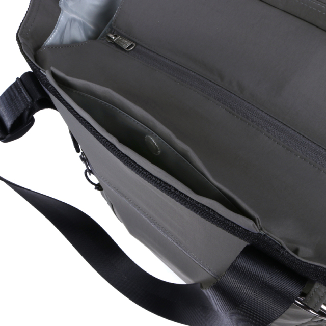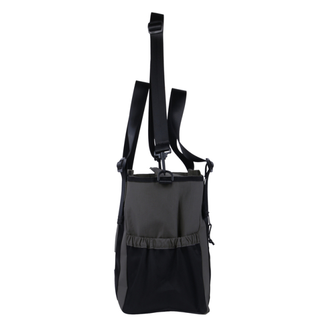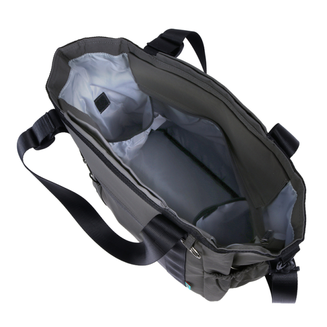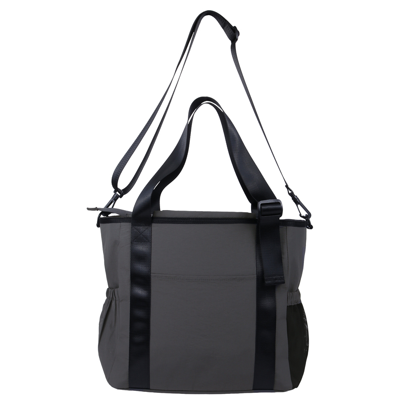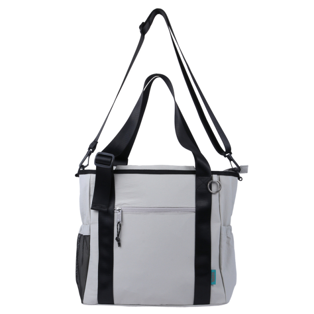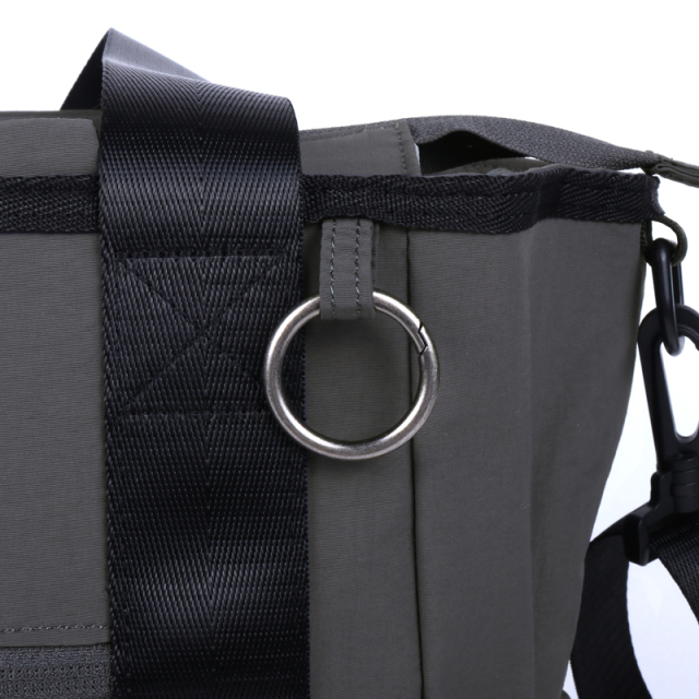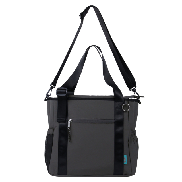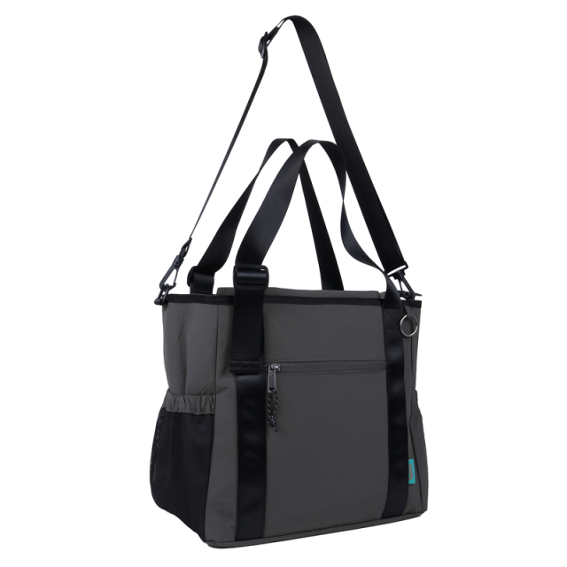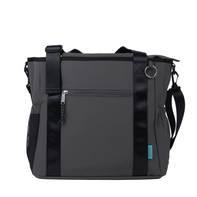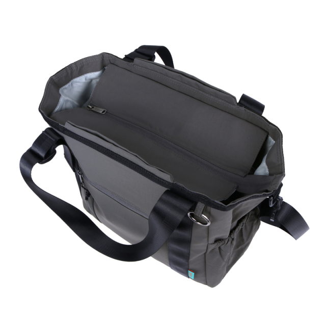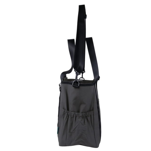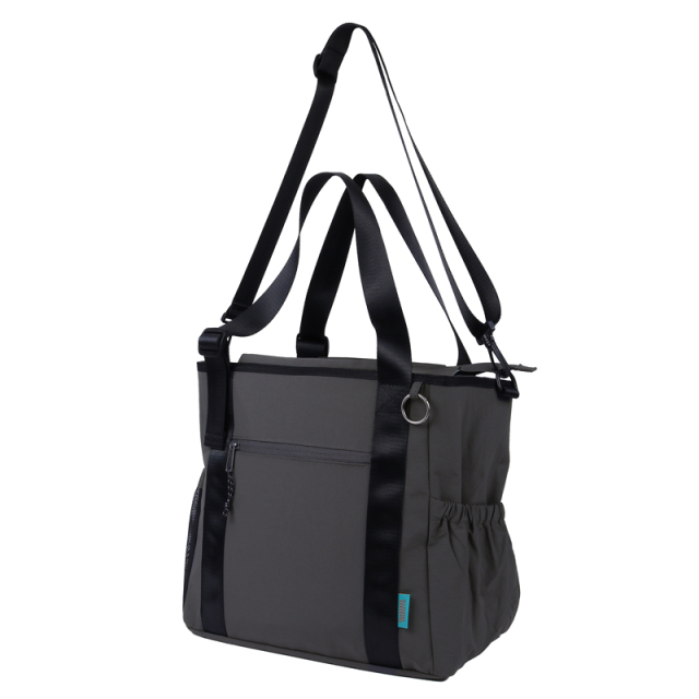 普段のお出掛けから旅行まで活躍する2WAY トートバッグです。 ポケットが11個あるので荷物を小分けできます。中のサイドポケットはメインルームの天ファスナーを開けずに、 折りたたみ傘など出し入れできる便利な仕様。 上部のトラッシュポケット (ゴミ入れ) はティッシュや飴の包装など、ちょっとしたゴミをサッと入れられます。 ショルダーストラップは肌への負担を軽減できるよう柔らく、そして上品な風合いの素材。 デザインもベーシックなので家族で使えます。