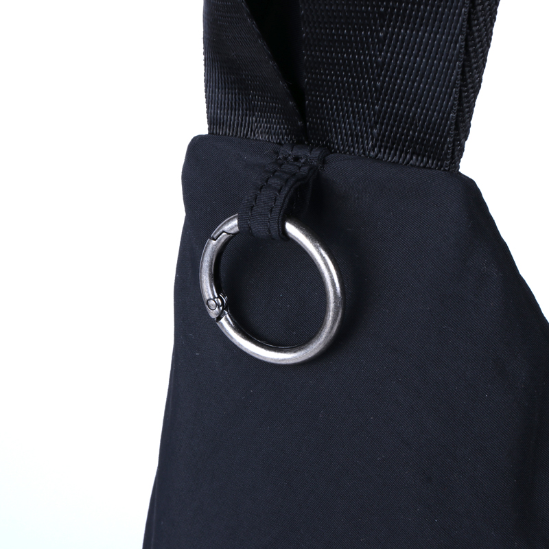 ボディバッグやショルダーバッグでは物足りない方へオススメのワンショルダーバッグです。フロントポケットはファスナー付きで、サイドにはドリンクポケットを装備。ショルダーの下部にはトラッシュポケット(ゴミ入れ)付きで、ティッシュや飴の包装など、ちょっとしたゴミをサッと入れられます。持ち手の下にはおやつケースやキーホルダーを掛けられるリングカラビナ付き。両手を空けて背負えるので、マザーズバッグとしても人気の形です。