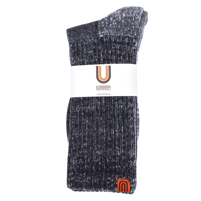UNIVERSAL OVERALL メンズソックス むら糸リブクルー LU-028