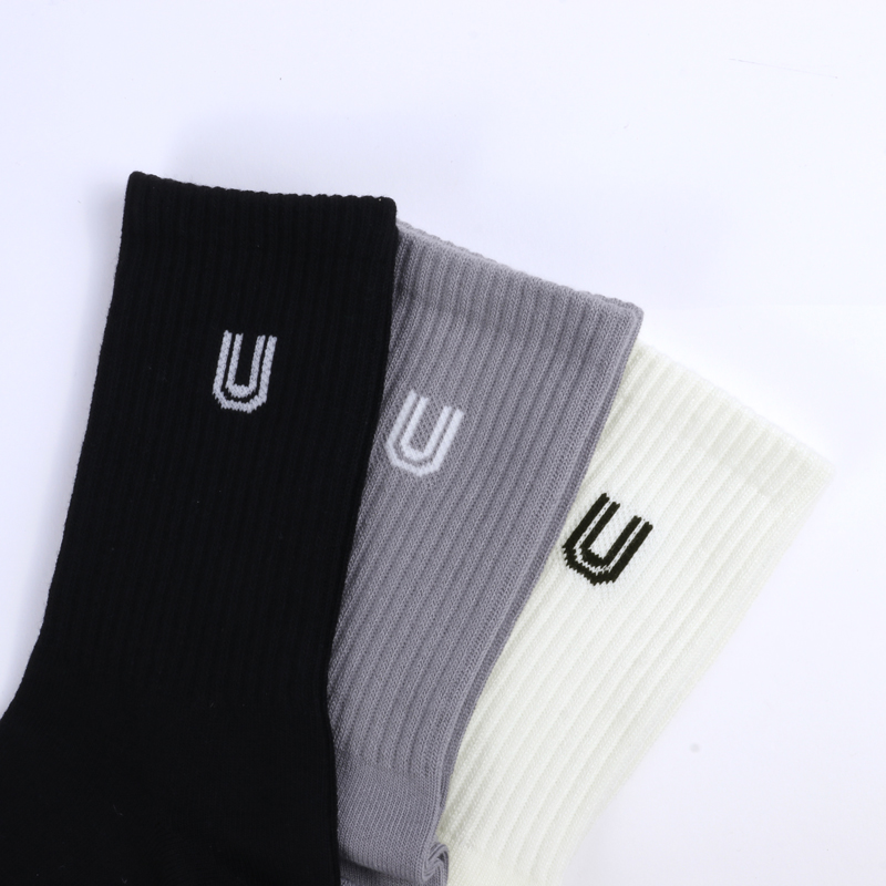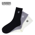 UNIVERSAL OVERALL メンズ 3P ソックス クルー丈サイドUOロゴ LU-374