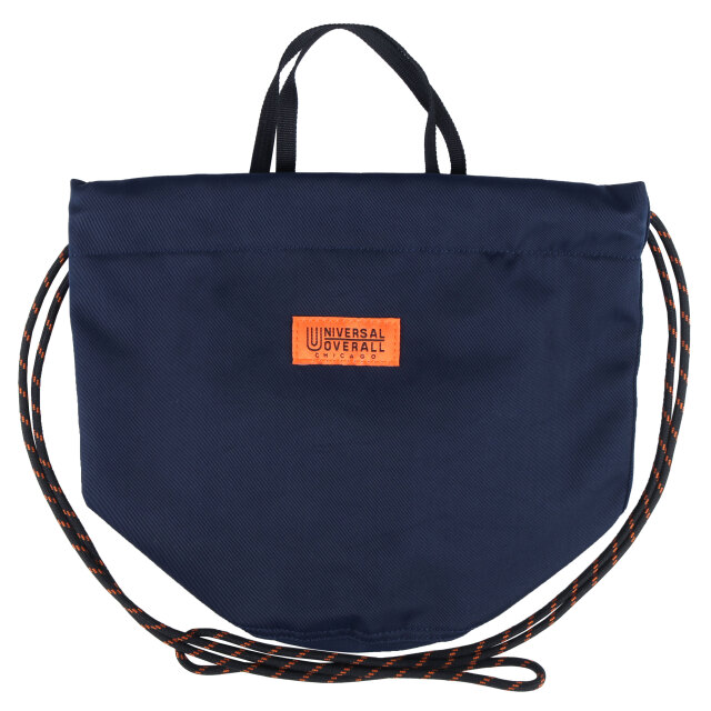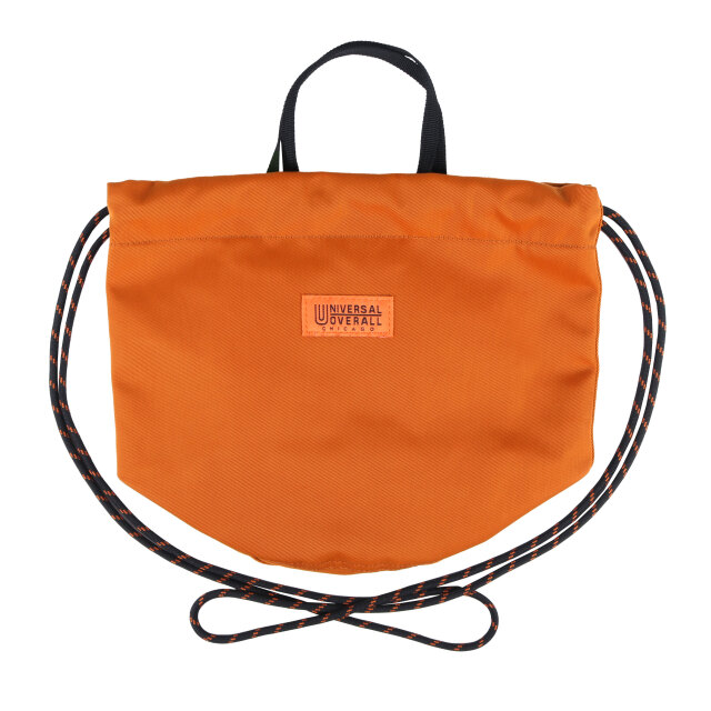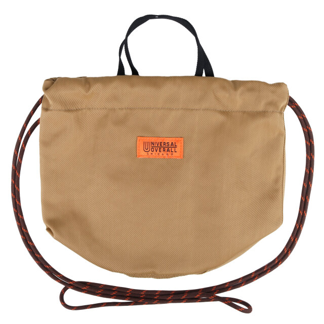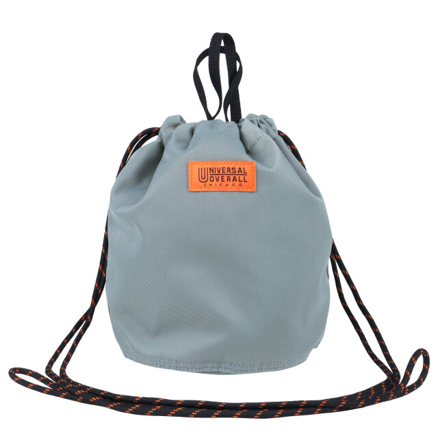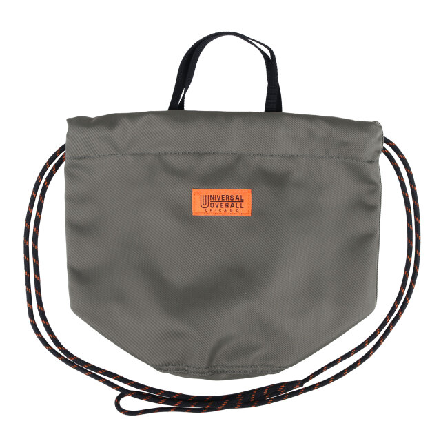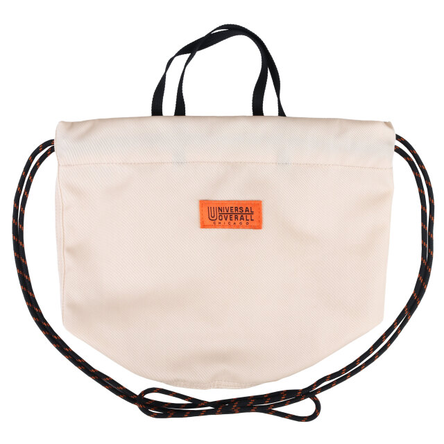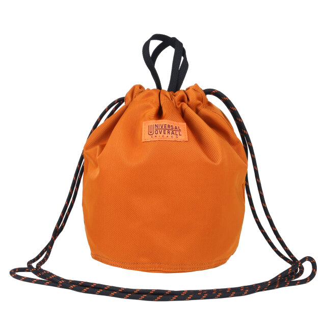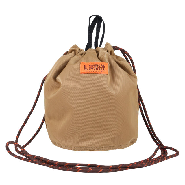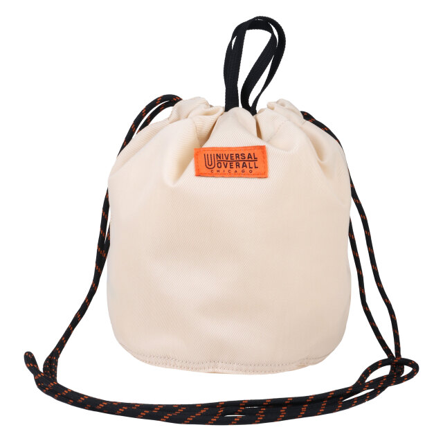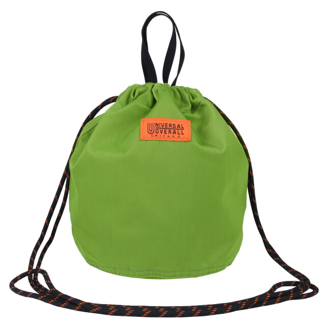 UNIVERSAL OVERALL のベストアイテム巾着。 丈夫なナイロン素材を使用しており、 単色とカラーザイル ( 紐 ) の組み合わせが シンプルながらコーディネートにポイントになるアイテムです。