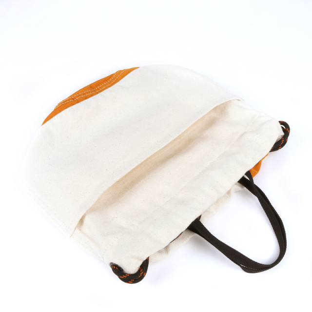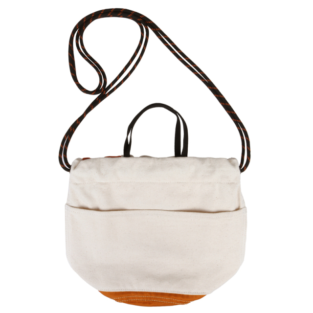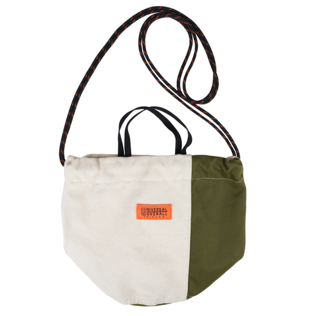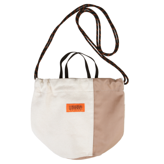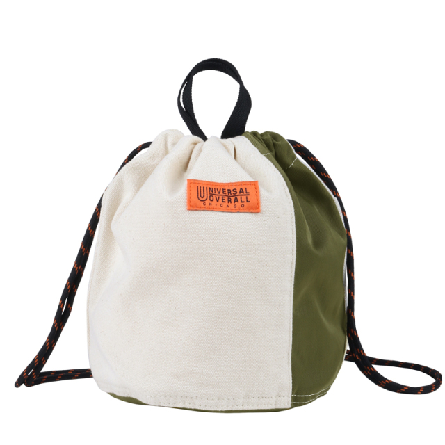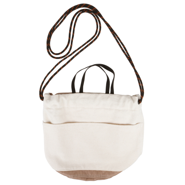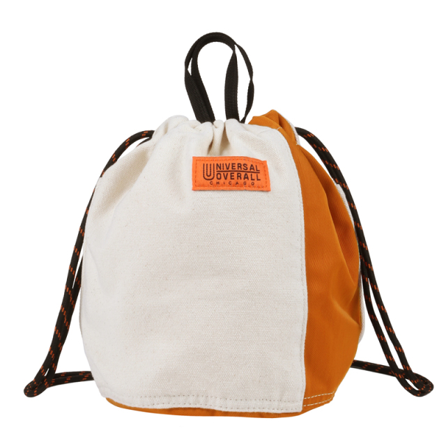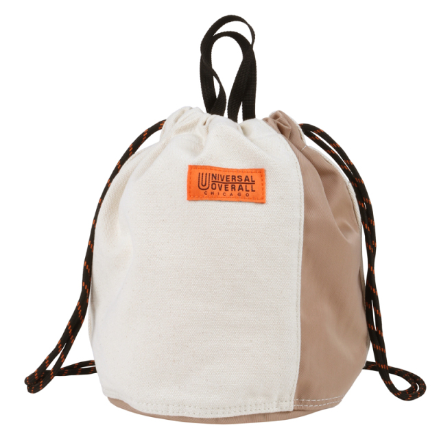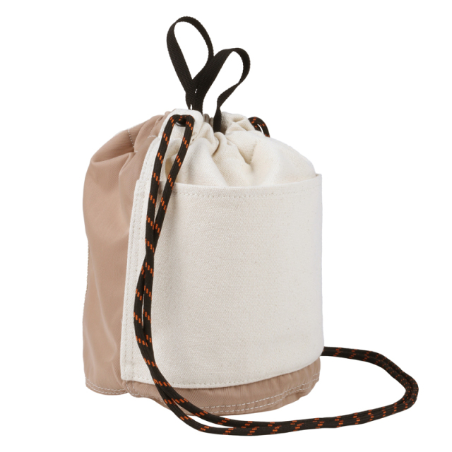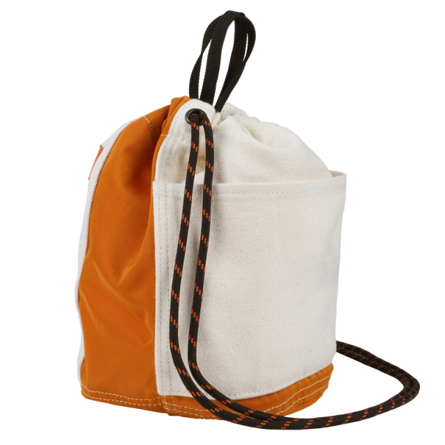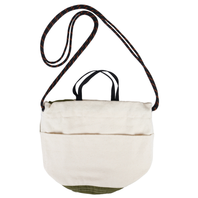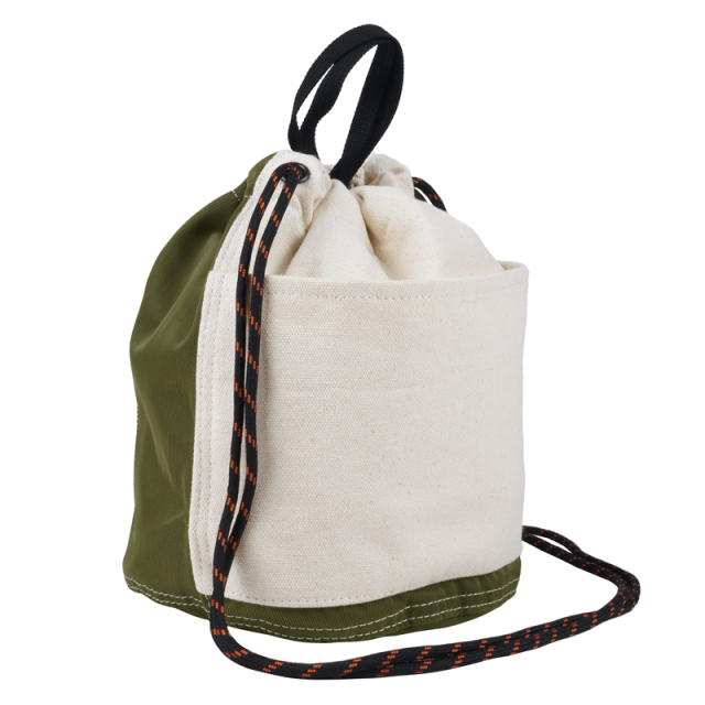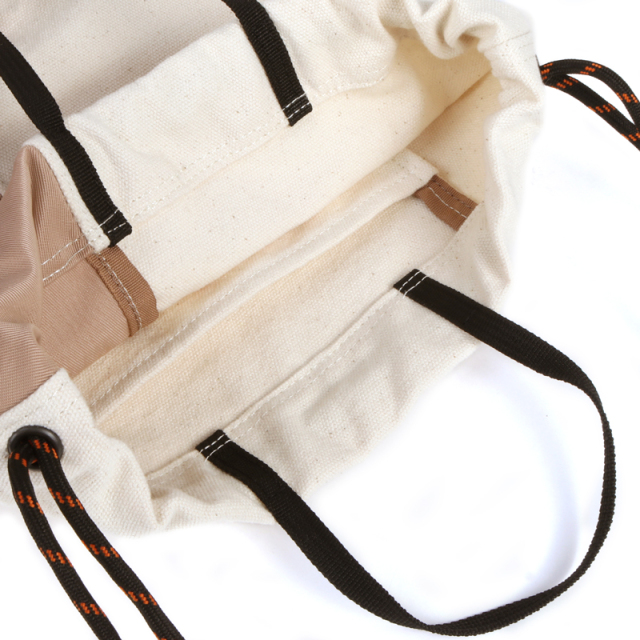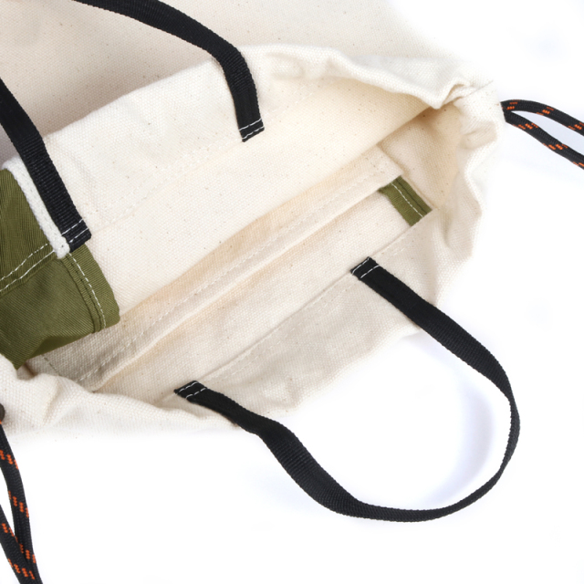 定番の巾着を異素材配色で切り替えました。16ozの帆布とナイロンツイルの組み合わせが新鮮な表情です。